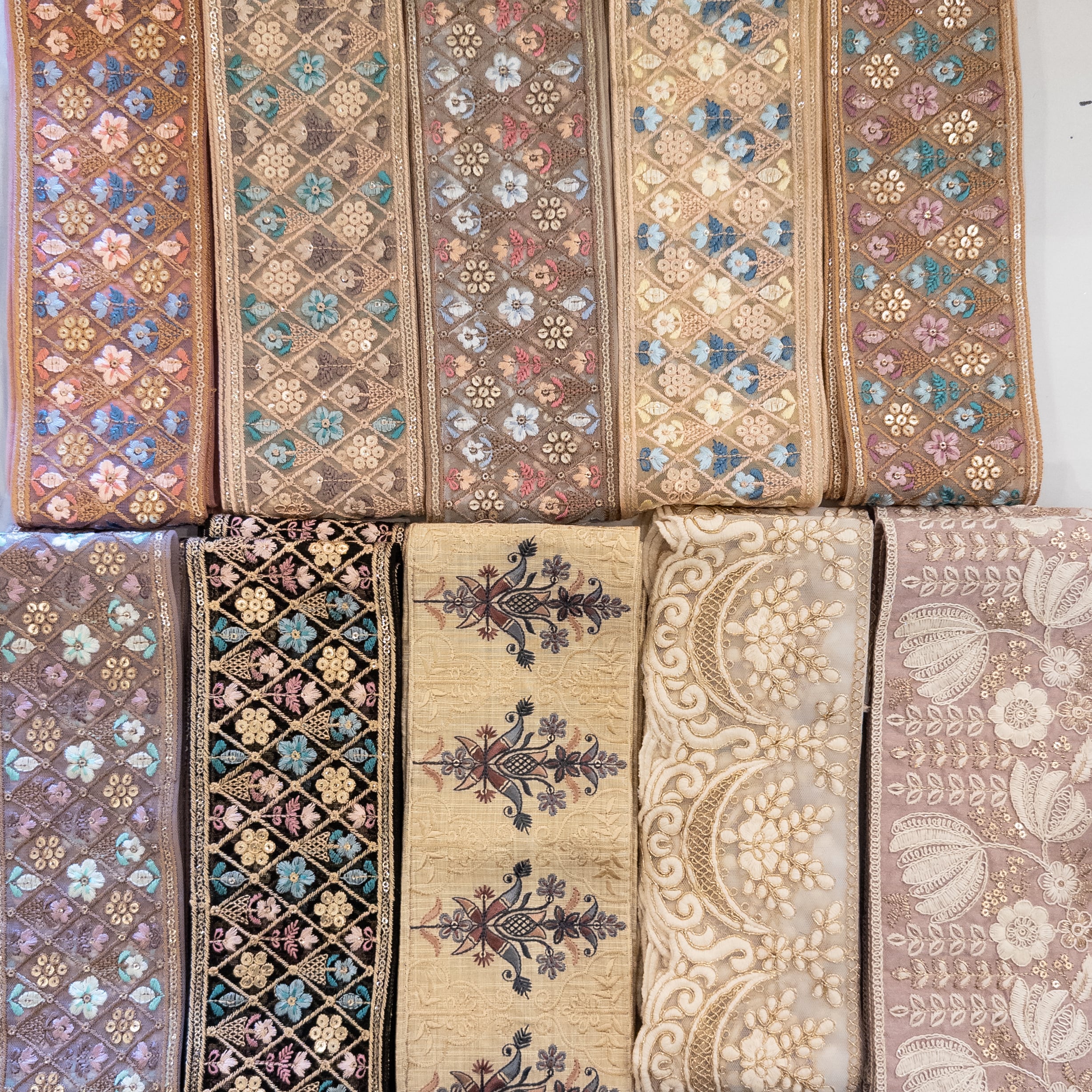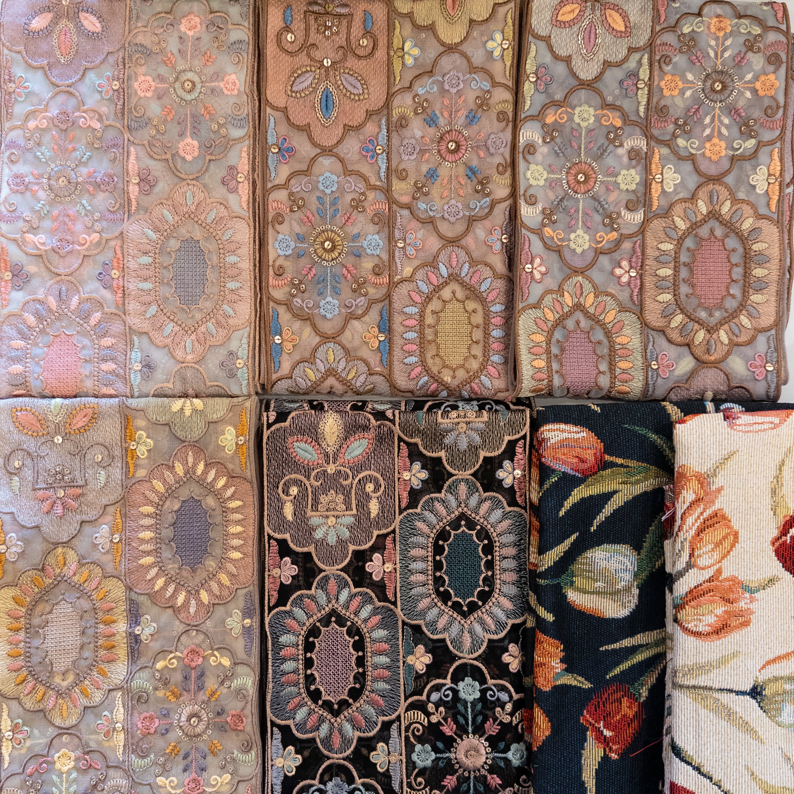 【2454】インド刺繍リボン57点、生地6点